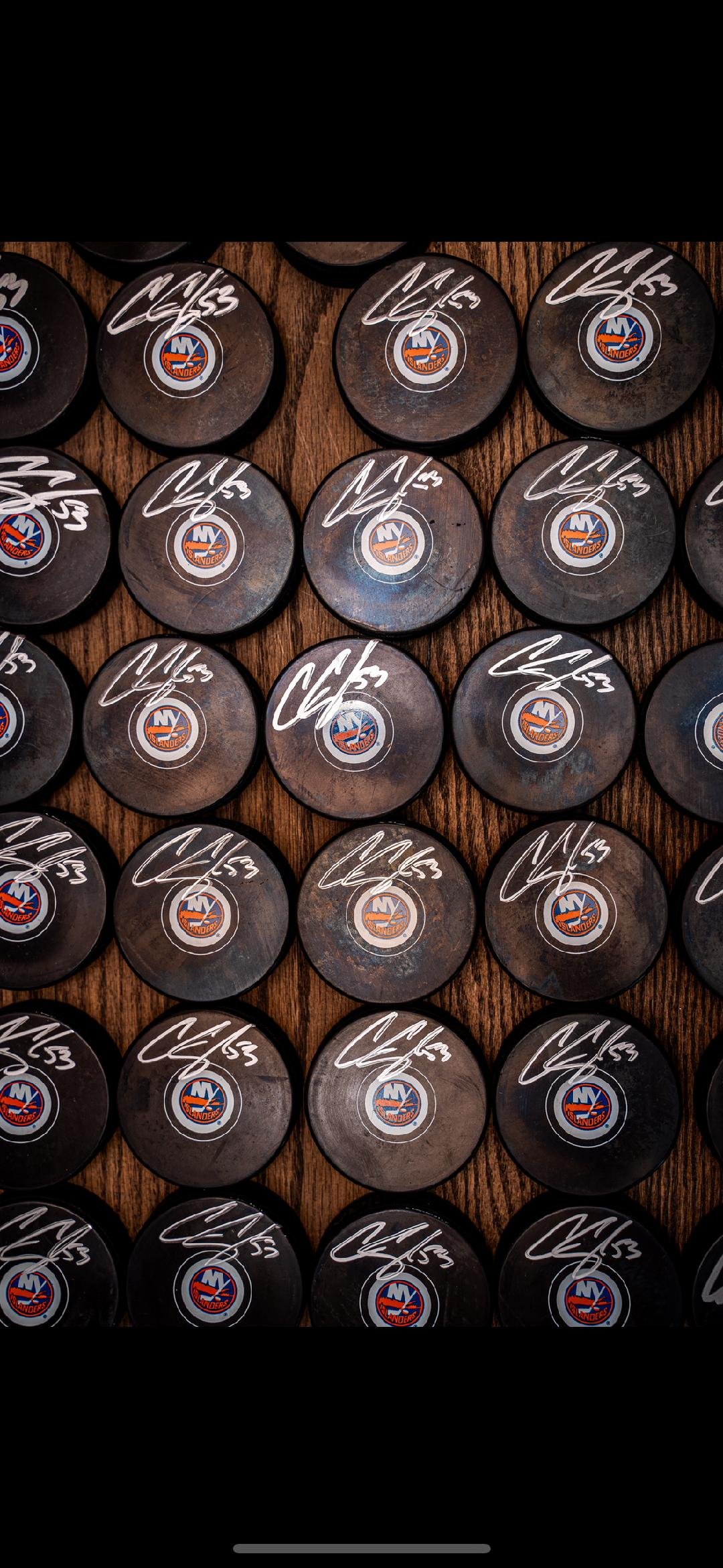 These are many perfectly signed New York Islander Logo Pucks by Casey Cizikas. These are signed in perfect spot, bold, and includes Casey’s number 53. Perfect gift for any Casey Cizikas / Islander fan! Beckett Certified.